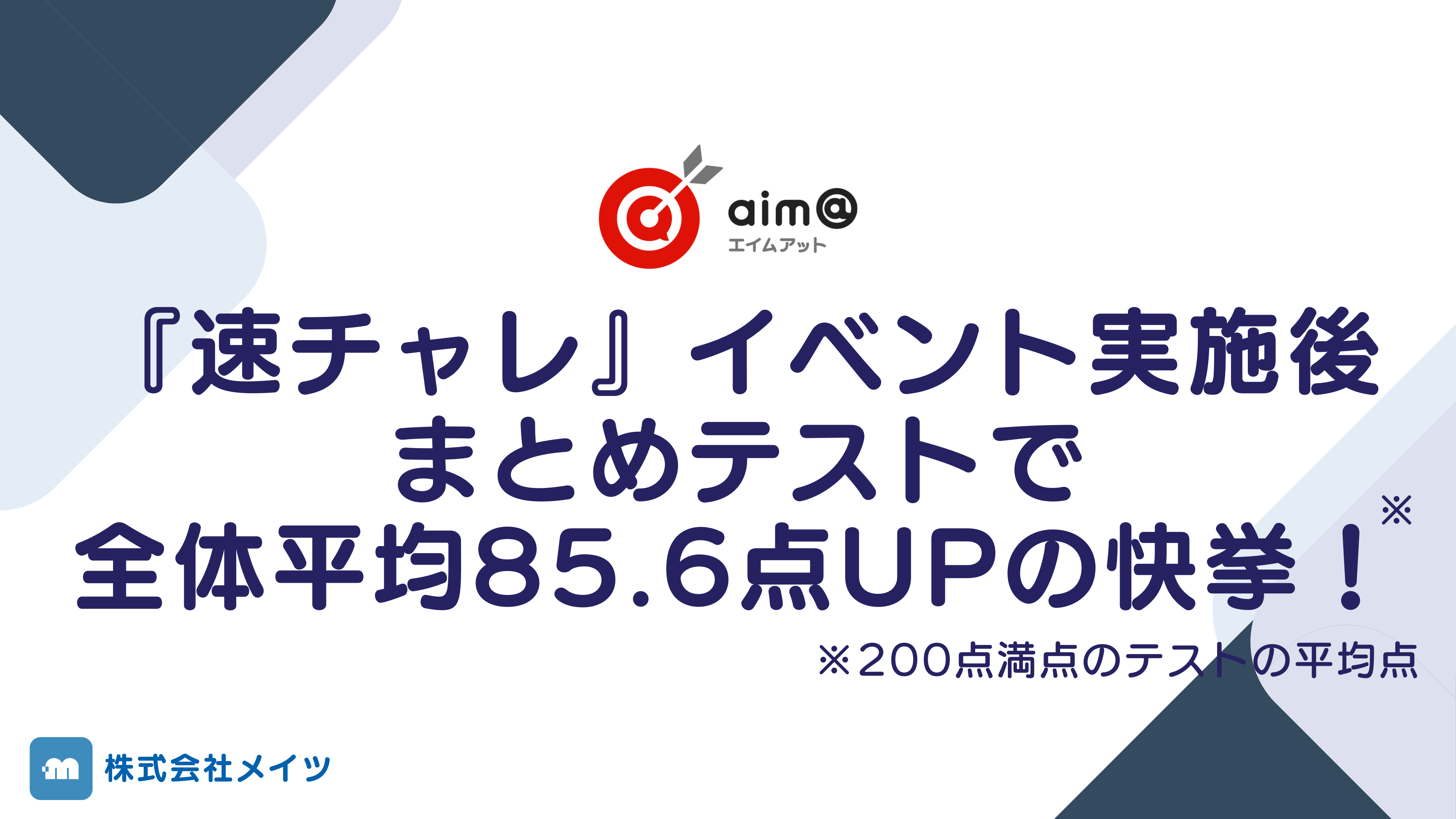 【aim@】俊英館で生徒92.9%が「やれば伸びる!」を実感。 aim@『速チャレ』活用イベントで、200点満点で平均+85.6点の伸び!