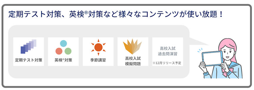 今回開催するセミナーでは、aim@に搭載されている中学生向け「定期テスト対策」、「高校入試-模擬問題演習-」コンテンツをご紹介いたします。