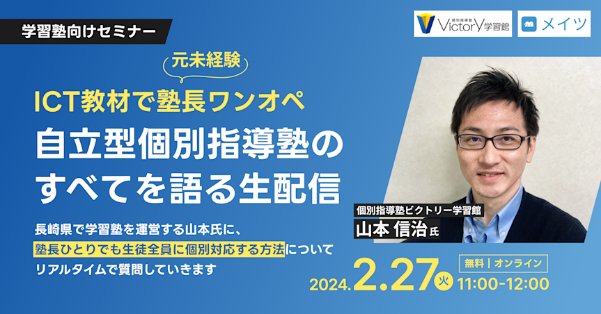 本イベントでは、長崎県の学習塾「個別指導塾ビクトリー学習館」の山本氏をお呼びし、リスナー参加型の対談形式で色々なお話を伺います。